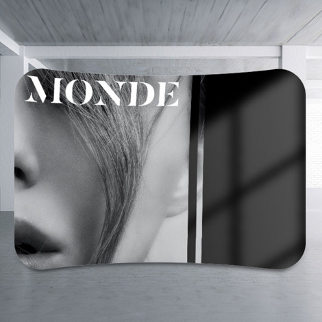 Draw attention to your event or business with an eye-catching knitted polyester curved media wall. The high-quality wall measures 3.0m x 2.2m. This product can be branded either on one side or both via full-colour sublimation and has a lead time of 14 working days.