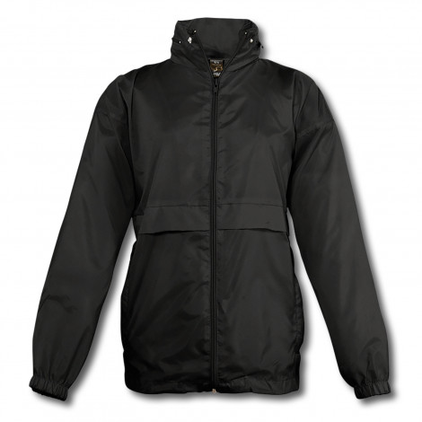 Lightweight unlined children’s wind breaker which is a larger fit to accommodate the layers underneath. It is manufactured from 210T polyamide and is showerproof and wind-resistant. The jacket has a full zippered front and a high collar which includes a stowaway elasticated hood. The waist can be adjusted using drawstrings for added protection from the elements. Other features include zippered side pockets and elastic cuffs. The surf windbreaker is available in five sizes.