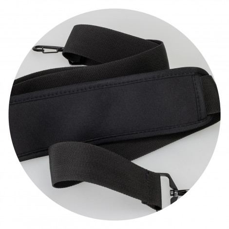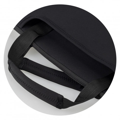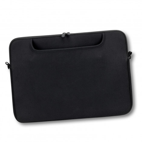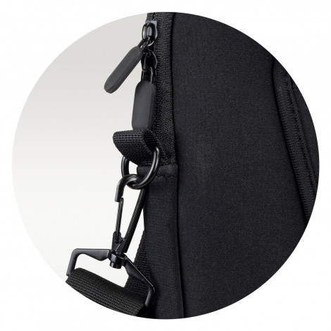 Secure neoprene laptop bag with stowaway carry handles and a removable shoulder strap, meaning the bag can also be used as a laptop carry sleeve. The bag features a plush lining for added cushioning and a pocket divider to accommodate devices of various sizes. Using neoprene in the bag’s construction provides extra protection and water resistance.